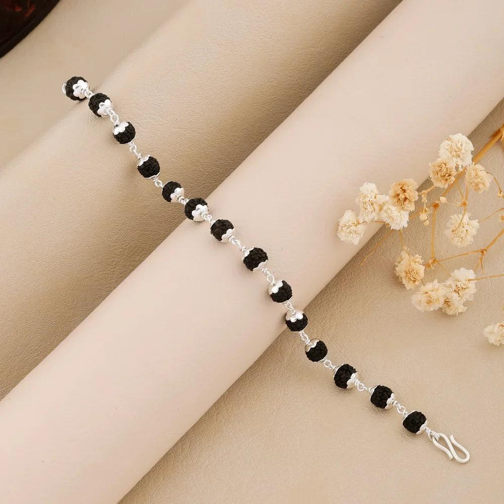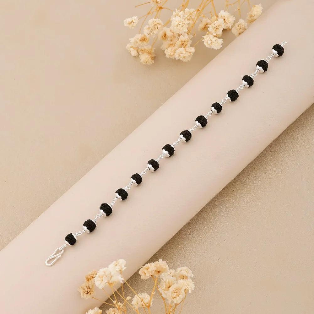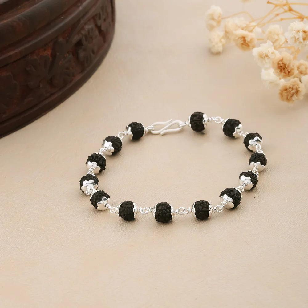 925 Silver Black Bead Star Cover Rudraksha Bracelet for Men
