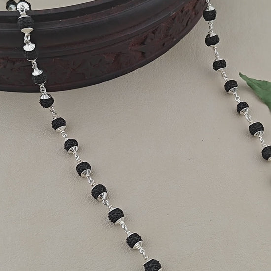 925 Silver Black Shiny Cover Rudraksha Mala for Men