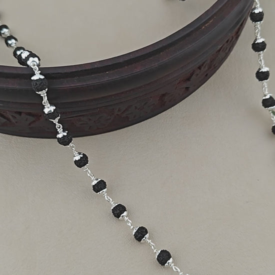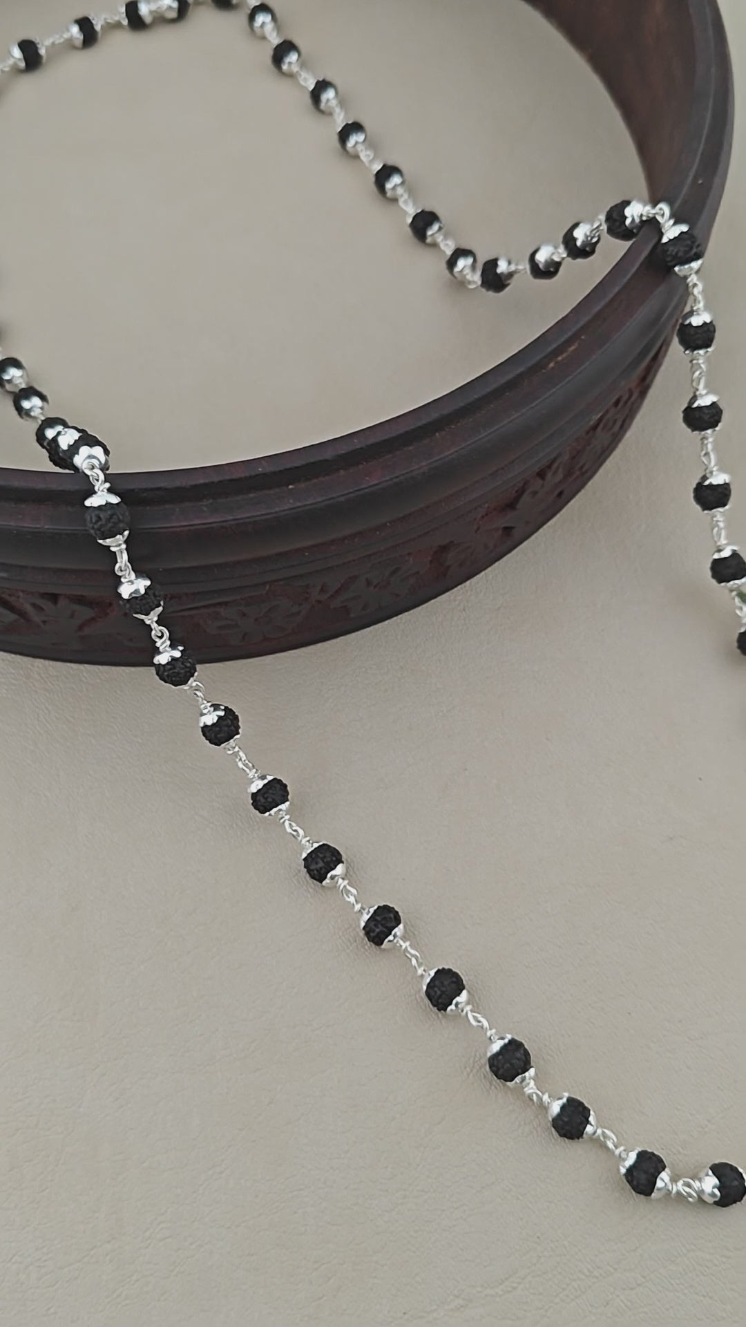 925 Silver Black Star Cover Rudraksha Mala for Men