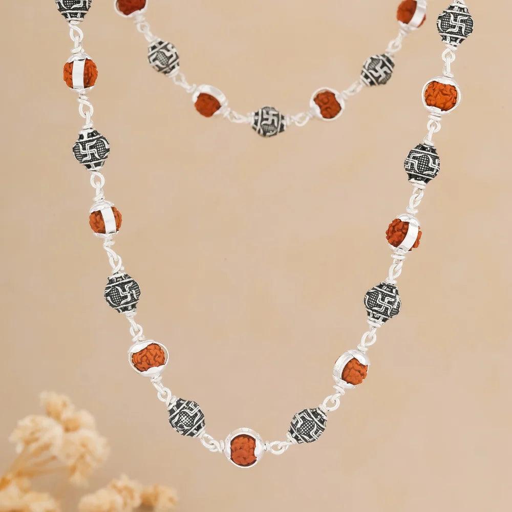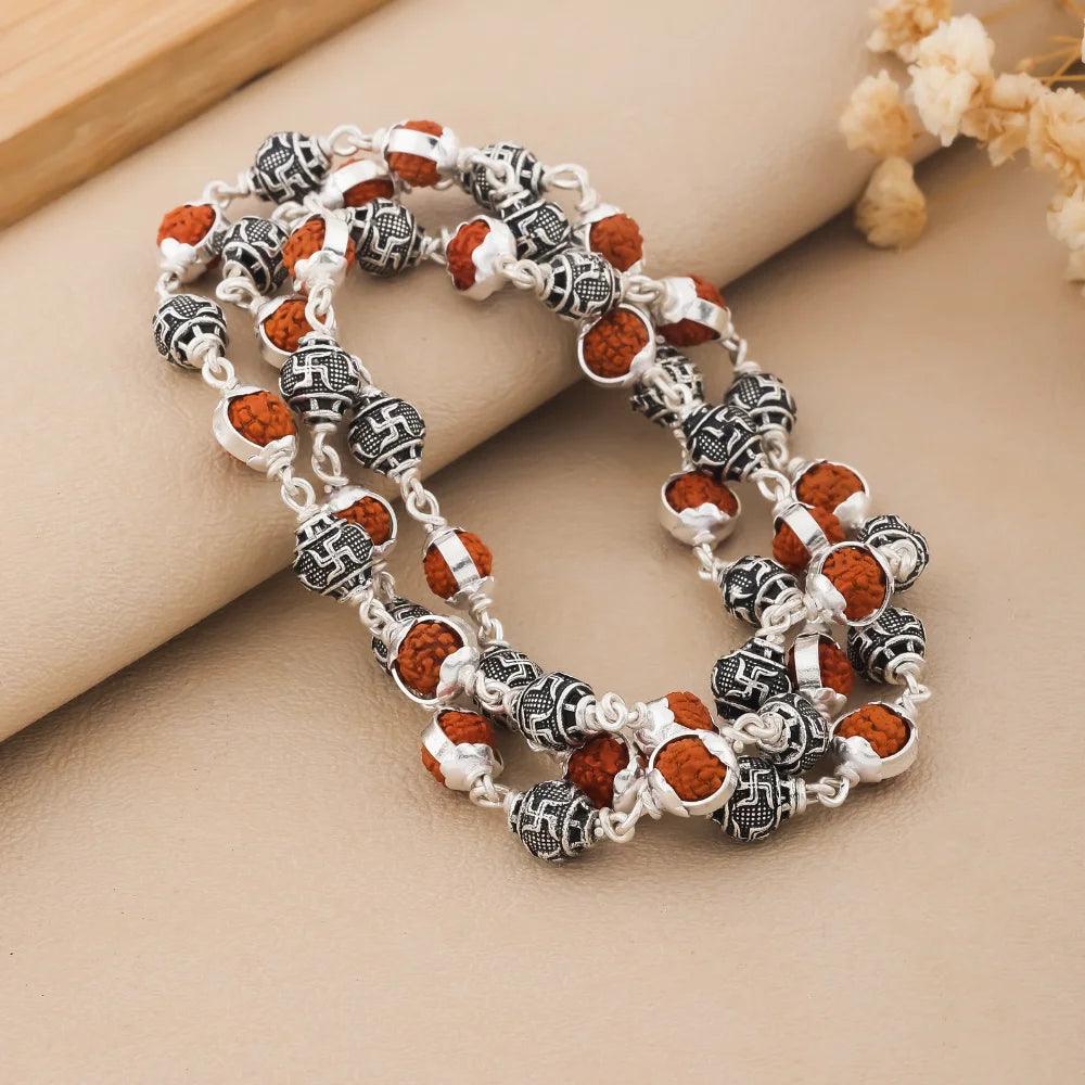 925 Silver SWASTIK Bead Cover Rudraksha Mala for Men